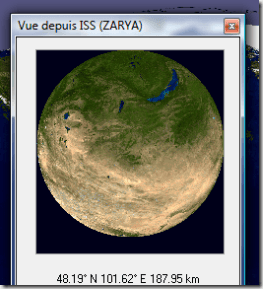 Enfin le menu Satellite permet de suivre un satellite particulier (ici l’ISS)