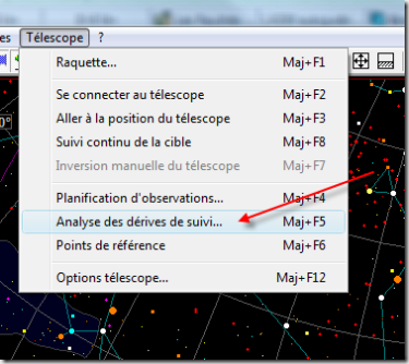 C2A offre la possibilité de zoomer sur des parties de la courbe, de copier en mémoire une image de la courbe en vue d’une réutilisation ultérieure, etc… Pour utiliser cet outil, allez dans le menu « Télescope » et utilisez la commande « Analyse des dérives de suivi…« .