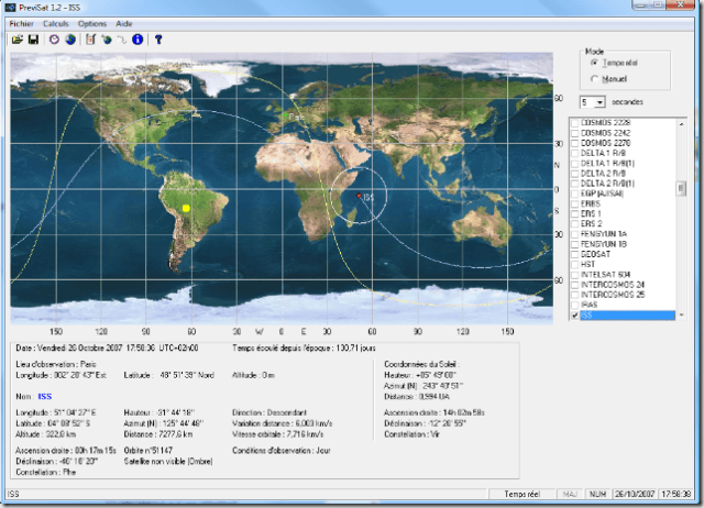 Voici donc PreviSAt qui calcule la position des satellites artificiels, ainsi que leurs prévisions de passage au-dessus d’un lieu donné.