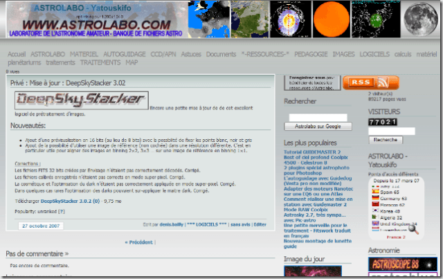 Si vous venez souvent sur Astrolabo, vous vous êtes rendus compte que l’apparence du blog était en train de changer.La semaine prochaine, je continuerai à améliorer l’interface : galerie d’images, menu déroulant, réorganisation des rubriques, accélération …Merci de votre compréhension et de votre patience.Avant:![]()