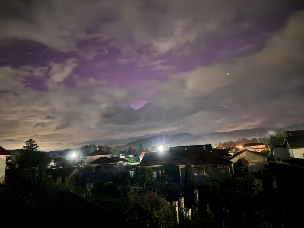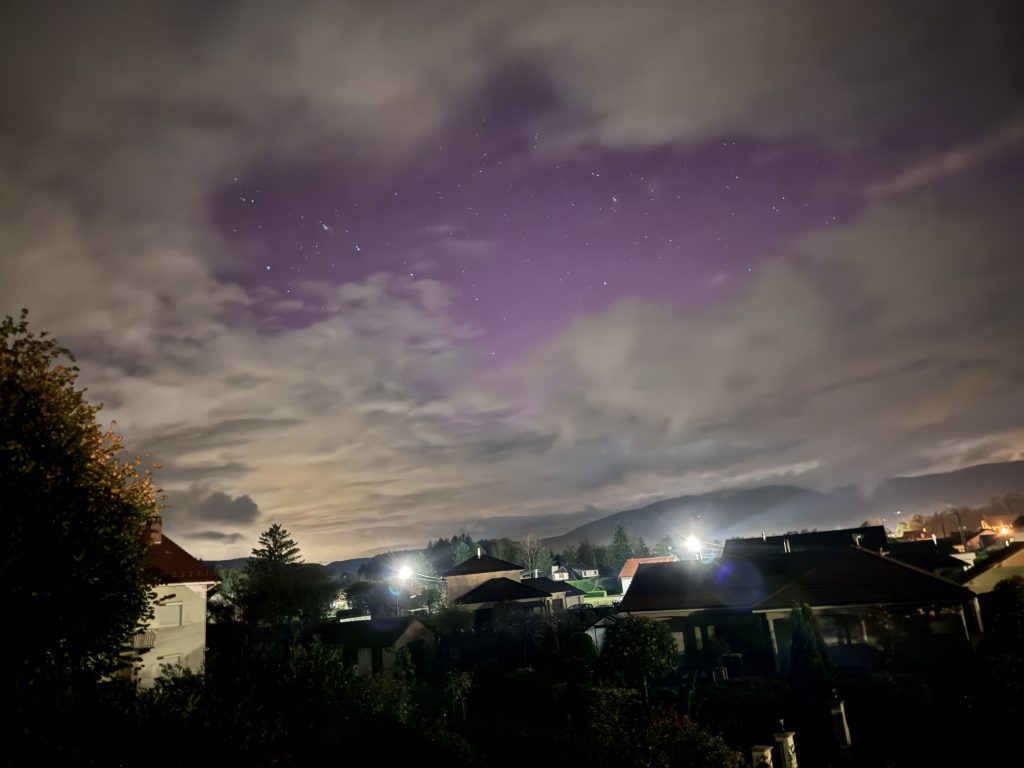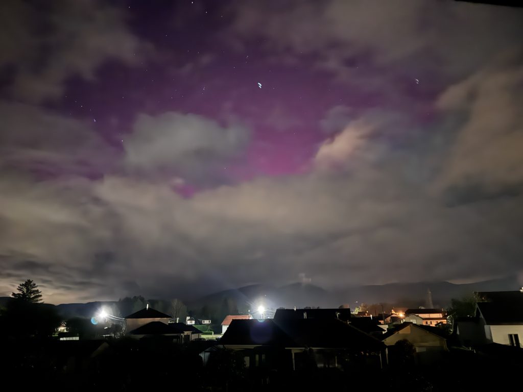 Malgré un ciel couvert, j’ai tout de même pu saisir la couleur de cette aurore exceptionnelle pour nos latitudes. Images prises avec un iPhone 15 Pro max en mode nuit (10s)
