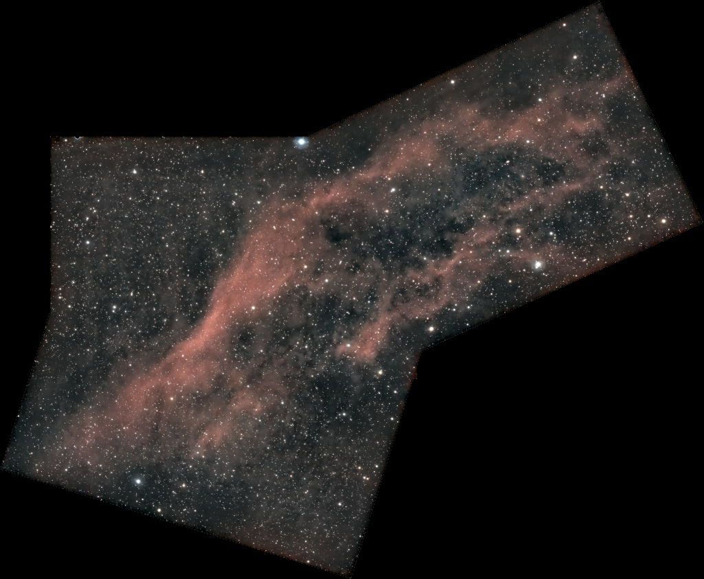Une composition de 3 images de 200x10s de la nébuleuse California. (même nuit que la Rosette)
