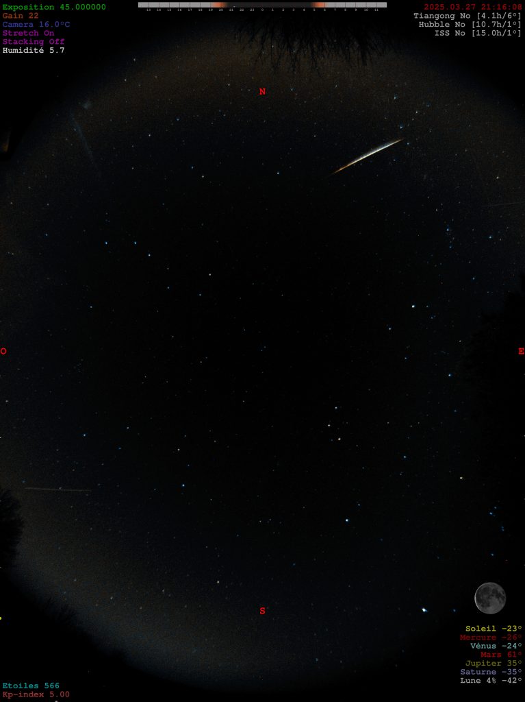 Cette nuit, un beau météore a été enregistré par ma caméra Allsky « maison ».