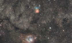 Une vieille série du mois de mai encore en mode AltAz. 131images de 15s traitées en drizzle x2 avec PI. On distingue un peu le pont de matière. Dans le Bouvier, l’image dans l’atlas des galaxies particulières de Halton Arp montre quatre galaxies (NGC 5752 à NGC 5755), aussi plusieurs références incluent ces …
