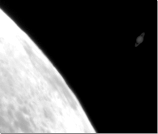 Ce mardi, c'était ma premioère occultation de Saturne par la Lune, eh oui. Il m'aura fallu attendre mes 47 ans pour en "voir" une (sur l'écran de l'ordinateur)